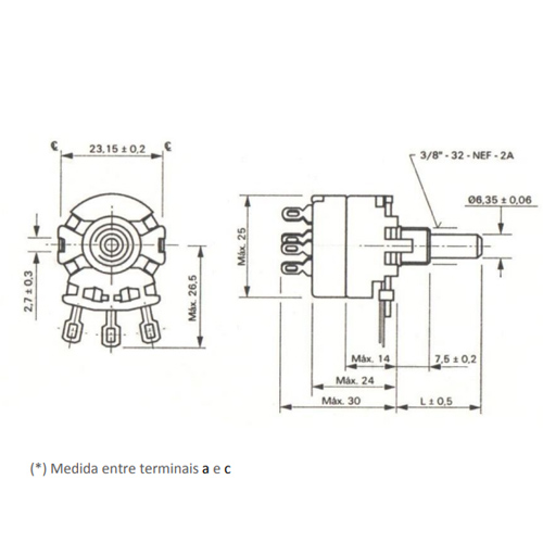 | Potência máxima | 40°C: 0,25W /70° 0,125W |